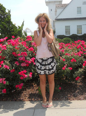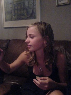 У домашней блондинки со стройной фигурой обалденный загар, видимо она была на море прежде чем начать позировать голой. Милашка не сразу предстала на кадрах в полностью обнаженном виде, а сперва снималась в одежде. Видимо раздевание и обнажение сисек не входило в её планы, но кавалер державший камеру смог уговорить красотку избавится от тряпок и показать пирсингованный пупок.