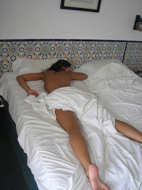 Подруга решила отдохнуть и с удовольствием вышла на заброшенный пляж у небольшой реки. Она быстро разделась и сначала немного покупалась в реке, а после, расслабленная долго лежала на песке обнаженной. Когда девушка немного отдохнула, она решила немного позировать фотографу, и они сделали несколько безумно эротичных снимков, которые вдохновили фотографа.
