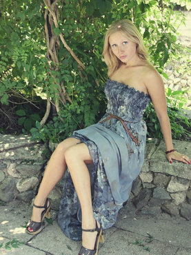 Русоволосая сбросила сарафан в горах