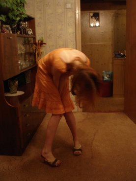 Толстожопая телка с рыжими волосами снимается голой в лесу