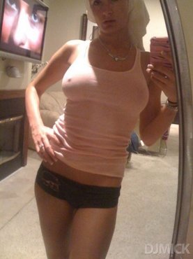 Хорошенькая блондинка показывает в студии сладкие местечки