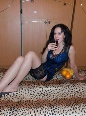 Зрелая неформалка позирует в чёрных чулках